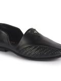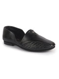 Men Black Stitched Open Sided Broad Feet Ethnic Slip On Juttis and Mojaris for Wedding | Traditional Indian Kurtas Shoes | Flexible TPR Sole with Soft Cushioned Insole