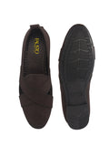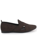 Men Brown Criss Cross Strap Perfortated Velvet Slip On Ethnic Juttis | Prom Slip On Shoes For Wedding, Festive | Loafer Shoes with Memory Cushioned Insole
