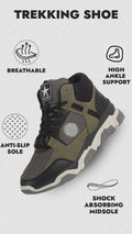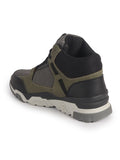 Men Olive High-Top Heavy Duty Hikking Trekking Biking Boots | Breathable Athletic Lace Up Casual Shoes with Cushioned Insole | Street Style, Sports and Adventure