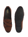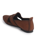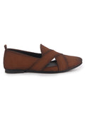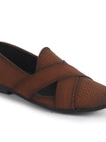 Men Tan Criss Cross Strap Perfortated Velvet Slip On Ethnic Juttis | Prom Slip On Shoes For Wedding, Festive | Loafer Shoes with Memory Cushioned Insole