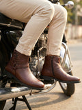 Buy Men Tan High Ankle Genuine Leather Chelsea Boots Online