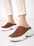 Type: Laser Cut Design Stitched Back Open Slip On Mules Shoes