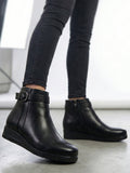 Shop Black High Ankle Casual Buckle Boots | Fausto