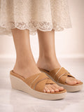Shop Women's Beige Silver Cross Strap Wedge Sandal Online