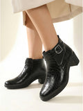 Buy Women Black Heel Mid Top Embossed Strap Chelsea Boots