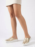Shop Women Golden Perforated Laser Cut Slip On Mules Shoes