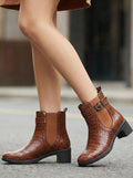 Buy Women Flared Heel Embossed Winter Buckle Chelsea Boots