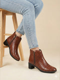 Buy Women Heel Mid Top Leopard Print Side Zipper Classic Boots