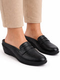 Buy Women Black Formal Back Open Wedge Heel Slip On Loafer