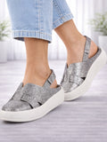 Buy Women Silver Backstrap Hook And Loop Slip On Shoes Online