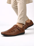 Buy Men Tan Laser Cut Perforated Shoe Style Roman Sandal