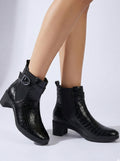 Buy Women Black Flared Heel High Ankle Chelsea Boots Online