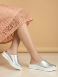 Shop Women's Silver Perforated Classic Mules Shoes Online