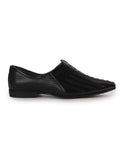 Buy Men Black Textured Ethnic Round Toe Juttis & Mojaris Online