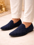 Buy Men Navy Blue Shimmering Velvet Ethnic Juttis and Mojaris